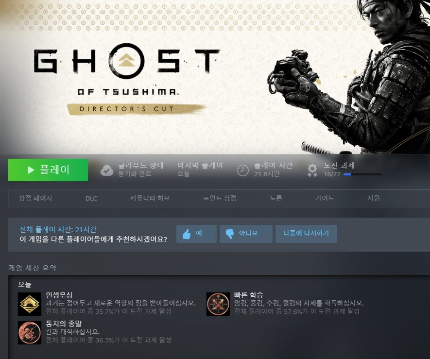 후작 고스트 오브 요테이가 출시되면서 다시 주목받고 있는 역주행 게임인데,